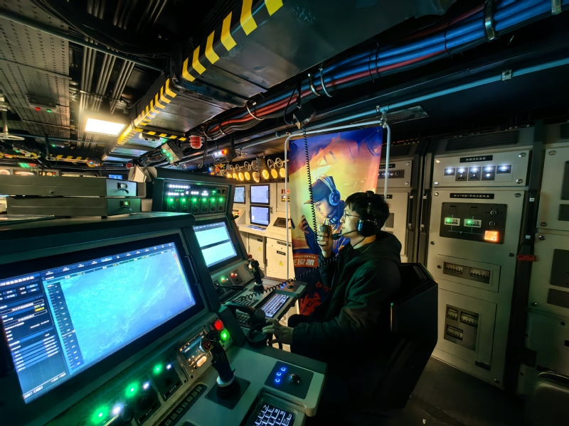 活动首站,老师们抵达东方影都蛟龙行动实景片场,参观国内首个真实潜艇置景——「龙鲸号」核潜艇。这座长达120米的庞然大物,以其高度还原的内部构造和精密联动的九大功能舱室,展现了国家尖端科技与国防力量的震撼形象。老师们深入探索核反应堆舱、导弹舱、鱼雷舱等作战单元,不仅了解了大国重器的背后故事,更深刻体会到国家安全与科技自强的重要性。这进一步强化了教师们心怀“国之大者”、服务国家战略需求的责任感,以及在实际教学科研中追求卓越、精益求精的工匠精神。
