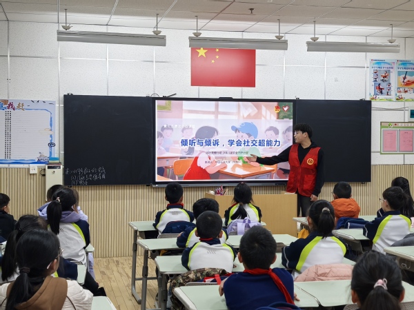【本站讯】20251212日下午,石油工程学院实践中心管道计划宣传志愿服务活动第一讲在富春江路小学406班顺利开展。本次活动由学院社会实践与志愿服务中心组织,中心管理部部长刘釜源、张安斌主讲,聚焦管道保护计划分支的心理健康主题,为同学们带来生动宣讲,助力身心成长。