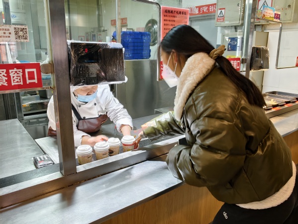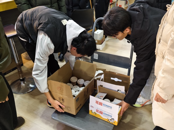 为确保热饮及时传递暖意,同学们提前在学院咖油吧开展筹备工作。志愿者们分工协作,快速完成热牛奶的分装工作,将一杯杯热气腾腾的牛奶细心收纳进保温箱。箱外是冬日凛冽的寒气,箱内是暖到指尖的温度,这份温差间的守护,为清晨的校园注入了别样温情。