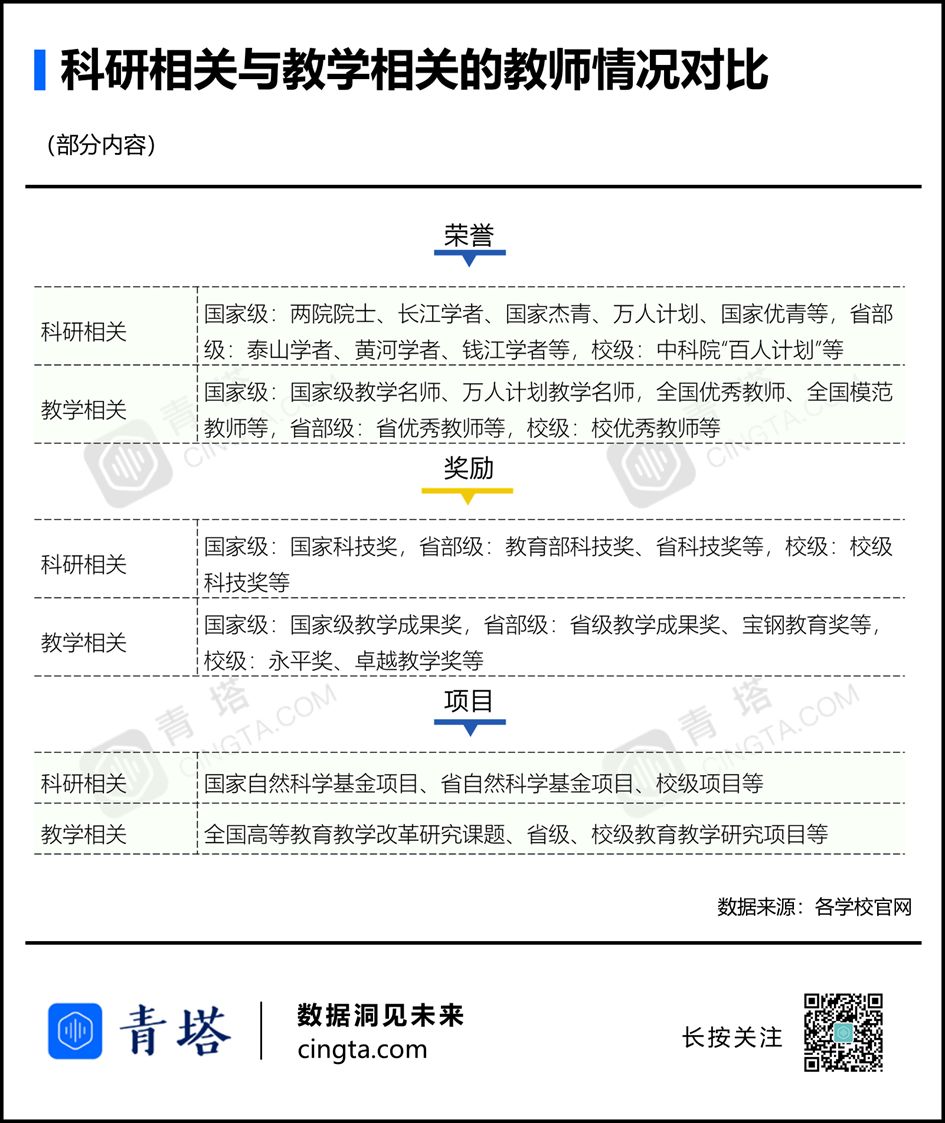 近年来国际间的竞争,尤其是科技创新方面的竞争加剧,使得我国在科学研究方面投入巨大,也间接影响高校对科研型教师的重视。 其中,教学型和科研型教师在个人荣誉、奖项、项目支撑等方面都有较大差异。