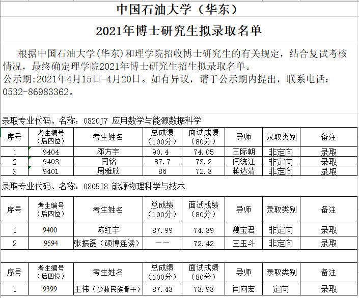 开云电竞投注(华东)理学院2021年博士研究生拟录取名单公示