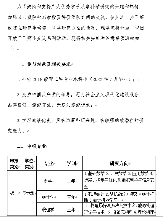 理学院关于组织开展2021年“校园开放日”系列活动的通知