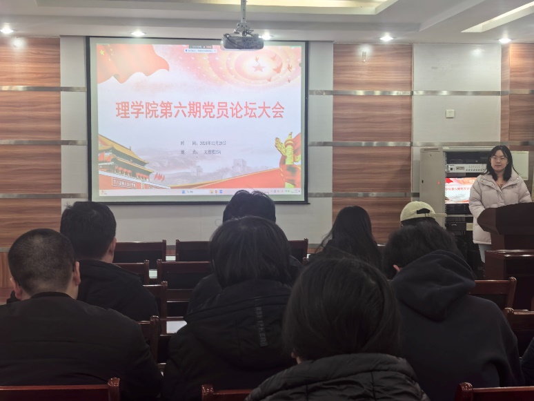 12月28日,理学院研究生党支部“党员论坛”第六期在文理楼254举办。本期论坛由4位学生党员担任主讲,研究生光电学生党支部的张飞扬、张倩分别讲述参加科技竞赛的收获体验以及求职相关经验,研究生物理学生党支部的梁云航分享了个人获评国家奖学金的成长故事,张欣悦分享了参加社区志愿服务活动的心得体会。