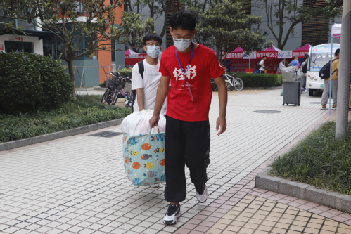 为应对当前特殊形式,积极响应国家防疫要求,2021级学生分批入校。9月7日至8日,山东省外新生在志愿者的帮助下进入西北门进行核酸检测,经由摆渡车到达宿舍楼隔离,等待检测结果。9月10日至11日,西北门及南门皆安排迎新志愿者,负责帮助省内新生指引道路,完成登记报道。“今天入学本来有点忐忑,但学长学姐十分热情,入校流程也没有想象中的复杂,我非常顺利地到达了宿舍,很期待日后的大学生活。”营销2102张艺川这样说。在经管学院迎新处现场,院学生会成员与各班志愿者身着工作服,指导新生完成资格审查、易班激活线上报道与档案上交,帮助新生搬运行李,分发校园一卡通。当被问道志愿者工作感受时,工管2002王怀龙说道:“迎新工作虽然很累,但十分有意义,在帮助学弟学妹的同时,我也收获了快乐与成长。”