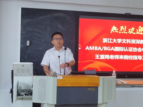 9月5日下午,国际工商管理硕士协会暨商学院毕业生协会(AMBA&BGA)中国区负责人、浙江大学文科资深教授王重鸣对我院开展AMBA&BGA认证回访工作。学院领导班子及教职工参加回访座谈。