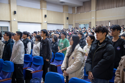 讲座在全体齐唱《光荣啊,中国共青团》的激昂旋律中正式开始。