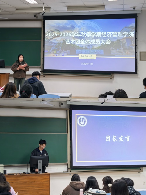 灯光交汇之处,艺术与协作激荡璀璨花火;青春集结之时,热爱与成长共奏动人乐章。11月20日,经济管理学院艺术团全体大会于南教212圆满举行。学院团委文艺工作分管教师崔雅棋出席会议,艺术团团长杨灿、单提健主持会议,离坚白辩论队、古典舞队、声乐队、模特队、街舞队、主持队、曲话队等七支队伍成员参加会议,共同为艺术团新学期发展规划展开交流。