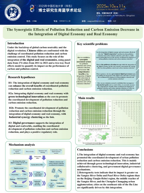 第八届青蓝论坛-经管&马克思主义分论坛 王博瀚:The Synergistic Effects of Pollution Reduction and Carbon Emission Decrease in the Integration of Digital Economy and Real Economy
