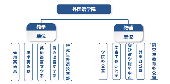 学院现设英语语言文学系、俄语语言文学系、通用英语系、学术英语系和研究生外语教学部等5个教学系部,拥有语言服务工程与管理二级学科博士点(下设国际舆情治理数据工程与管理、应急语言服务数据工程与管理、语言健康智慧工程与管理等3个研究方向),外国语言文学一级学科硕士学位授予权(下设外国语言学及应用语言学、翻译学、外国文学、语言智能与全球治理等4个方向),翻译硕士专业学位授予权(包括英语笔译、英语口译、俄语笔译)。拥有英语、俄语两个本科专业,以及8个外语语种,其中包括俄语、日语、法语、德语、朝鲜语、阿拉伯语、西班牙语等7个非通用语种。2022年英语专业获批国家级一流本科专业建设点,俄语专业获批省级一流本科专业建设点。