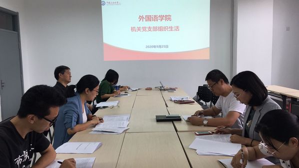 9月25日,外国语学院机关党支部在文理楼344召开新学期支部党员大会,学习党委书记王勇校长郝芳在新学期工作会议上讲话精神。支部全体党员参加会议,支部书记梅琳主持会议。