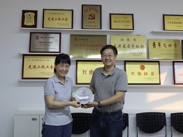 最后,学院向肖慧老师赠送纪念品,同时真诚希望她在享受健康快乐的退休生活的同时,继续为学院的建设和发展建言献策、发挥余热。