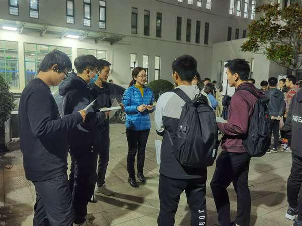 本期英语角在英语笔译专业研究生郭悦和英语1701班杨鑫雨精彩的歌曲表演中拉开序幕。活动由英语系精心安排组织并沿袭师生共同参与的小组模式,学生就双十一购物话题展开激烈讨论。英语系教师深入各小组,鼓励学生们勇敢表达自己的观点,“同学们要勇于张开嘴,用英语表达自己,对于自己不熟悉的单词或句子可以寻找其他的表达方式,不要过于在意别人的眼光,learn to open your mouth。”英语系教师刘媛媛这样说道。