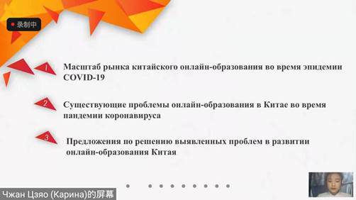 此次论坛共有两个议题:“教育、科学、创新”“当代大学生:志愿活动、预防恐怖主义与极端主义、信息安全”。共有22名优秀代表在此次论坛中展示报告。我院学生代表徐丹宁同学宣读了《志愿服务是预防现代社会中极端主义的有效工具》,讲述了极端主义的根源是社会上一些现象的包容度低,但志愿服务能有效的帮助人们提高宽容度;张娇同学宣读了《新冠疫情背景下中国在线教育发展现状》,讲述了当前中国在线教育的市场规模,新冠背景下中国在线教育发展出现的问题及解决途径。