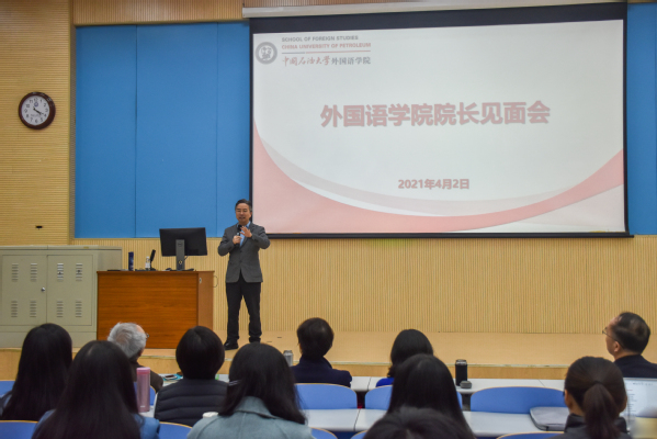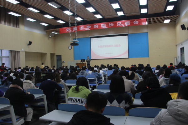 为有效提升学院云开体彩下载官网首页质量,搭建学院与学生交流沟通的平台,解答同学们在学业、职业发展规划和就业中的困惑,第一期《师说》活动于2021年4月2日下午在南教300开展“院长见面会”活动,邀请外国语学院院长毛浩然教授为同学们答疑解惑,指点迷津。全体本硕学生、辅导员、班主任、学业导师和学院领导参加此次“院长见面会”。