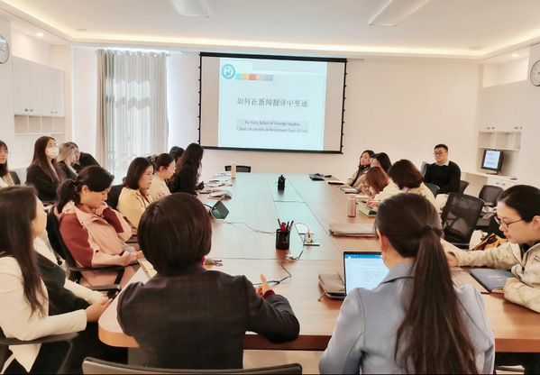 新闻翻译指导老师付晓以“如何在新闻翻译中变通”为主题,从翻译的性质、翻译的历史语境和现实语境、翻译工具、步骤、一致性等方面进行了培训,加深了同学们对翻译技巧、检索方法的认识。