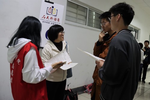5月14日晚七点,第八期石大外语角在文理楼中厅如期举行。本期外语角由通用外语系主办,英语1903班承办,主题为“My 14th Five-Year Plan”。通用外语系教师和外交David、Nev参与指导,100多位来自学校各专业的学生参与活动。