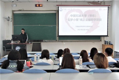 作为外国语学院社会实践与志愿服务工作的负责教师,韩晨玉受邀参与本次团日活动。他向支部成员们介绍了由外国语学院青年志愿者协会主要负责的“云梦小屋”线上公益助学项目。该项目依托“希望小屋”项目平台,为使小屋的孩子能够得到长期稳定的教育和关怀,由志愿者与小屋的孩子进行一一对接,给予他们学业上的帮助、心理上的陪伴以及精神上的鼓舞。通过韩晨玉的介绍,团支部成员们了解到“云梦小屋”项目主要包括:“小屋益起筑”,即开展旧物回收活动,主要回收师生的旧书籍、废纸、衣物、被褥等物品;爱心购、志愿者辅导以及规范化辅导,制定通识课程辅导课程表,针对每位孩子制定不同的英语辅导计划,给予学业帮助。