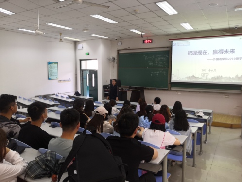 近期外国语学院2019级分别于文理楼346和西环105召开英语语言文学专业和俄语语言文学专业年级师生交流会。此次年级大会由外国语学院辅导员杜文倩主讲,兼职辅导员王钰鑫主持,外国语学院2019级全体学生参加。