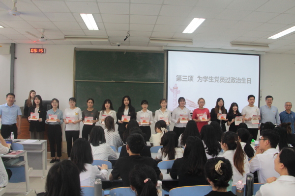 学院党委书记张永宁、副书记邹维忠与纪委办公室、监察处李健一起为学生党员过政治生日,颁发政治生日卡。少数民族学生党员苏比·阿不都艾尼发言,表达了对党组织的热爱,立志为党的事业贡献青春力量。校优秀学生党支部、俄语专业本科生党支部书记徐丹宁同志带领党员们重温入党誓词。