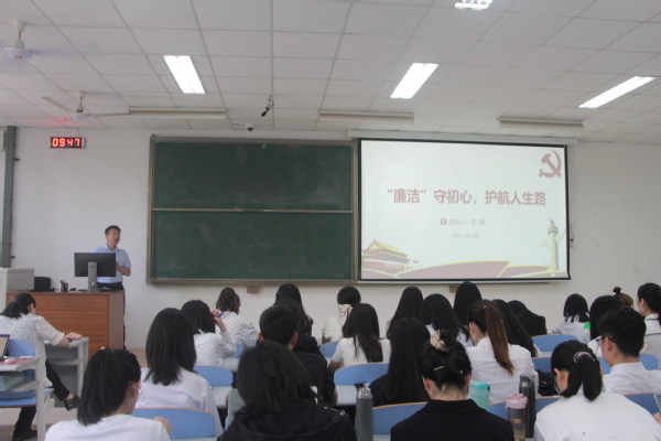 学校纪委办公室、监察处李健应邀为学院毕业班学生党员做题为“廉洁守初心,护航人生路”廉洁从业教育专题讲座。李健从“腐败离我们有多远”“什么是腐败”“什么是廉洁”“当前反腐的形势”“如何保持清正廉洁”五个方面展开,通过丰富的案例引导大家要时刻警惕腐败、自觉抵御腐败,他强调到,青年一定要扣好价值取向的第一粒扣子,把好人生的“总开关”。他希望所有毕业生党员都能依规依纪用权,时刻心存敬畏,时刻严以修身,保持廉洁定力,立大志、明大德、成大才、担大任。