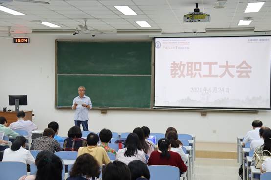 2021年6月24日,外国语学院召开2020-2021-2学期期末教职工大会,全体教职工参加了会议,会议由学院党委副书记邹维忠主持。