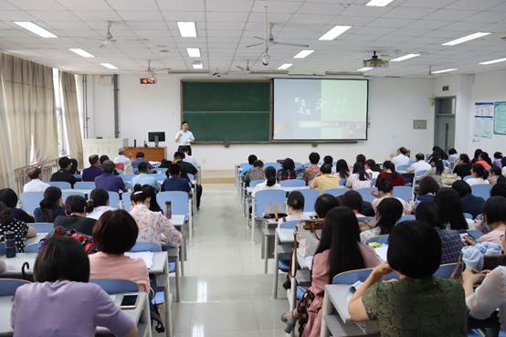 院长毛浩然汇报了《外国语学院教学与科研成果认定补充规定》的修订情况、教育部高层次国际化人才创新实践基地实验班培养方案,并以“外语课程思政核心要素的加法与减法”“通识教育课程教学团队的痛点与亮点”为主题做了课程建设报告。