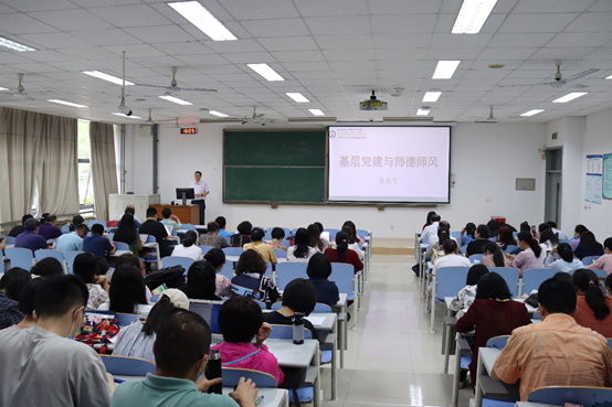 6月24日,外国语学院召开师德师风建设工作会,全体教职工参加了会议,会议由学院党委副书记邹维忠主持,党委书记张永宁讲授师德师风主题党课,院长毛浩然讲授外语课程思政主题党课。