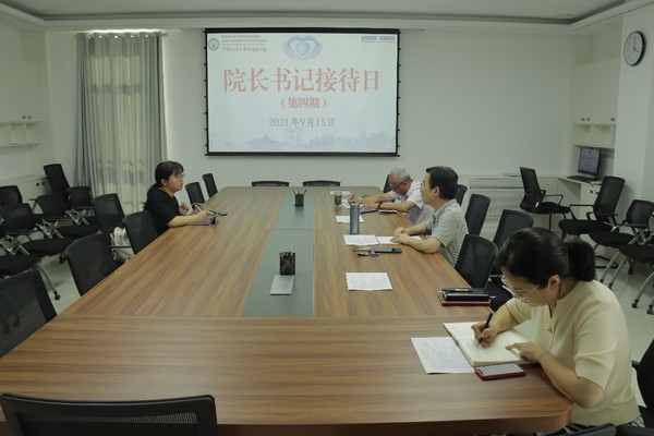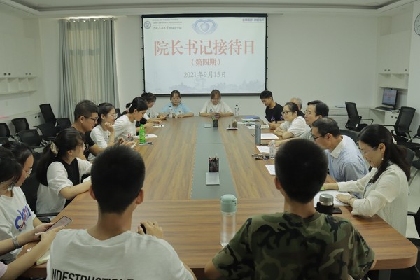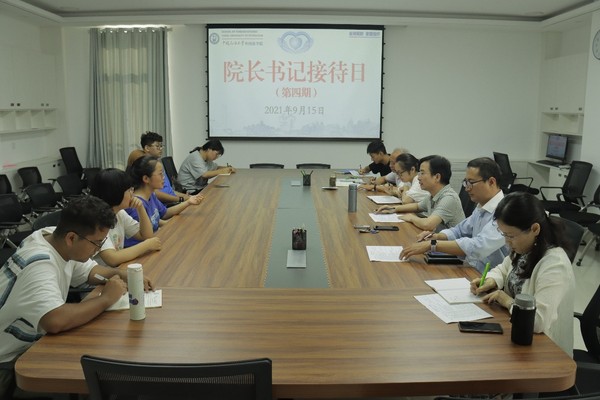 2021年9月15日,外国语学院开展第四期院长书记接待日活动,院长毛浩然教授,副院长张建科副教授,党委副书记邹维忠副研究员,英语语言文学系主任李燕云老师,俄语语言文学系副主任赵婷廷副教授,研究生教育办公室主任淳柳副教授,辅导员梅琳老师、张镇老师共同参加接待活动,分别与21名2021级研究生和本科生展开亲切交流,解答了专业培养方案、学习规划制定、职业生涯规划、考研就业选择、出国留学申请、社团活动择选、综合素质提升、学科竞赛备赛等20多个新生同学们共同关心的问题。