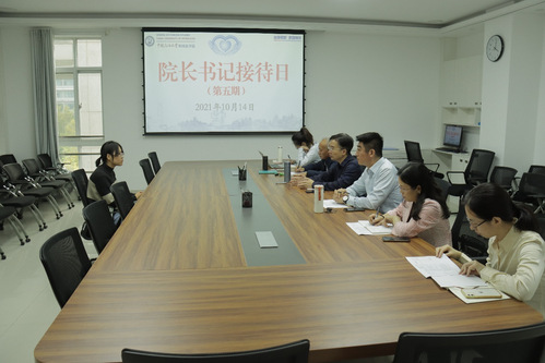 2021年10月14日下午四点,外国语学院开展第五期“院长书记接待日”活动,院长毛浩然,党委书记张炜,党委副书记邹维忠,英语语言文学系主任李燕云、系支部书记潘荔霞,俄语语言文学系主任赵婷廷、系支部书记林超和副主任孙淼,辅导员陈纪宁共同参加接待活动,分别与2021级和2019级4名本科生进行了90分钟的亲切交流,逐一详尽解答了保研、考研、考证、多语种学习、入党、大学生活规划、社交、大学生心理问题等同学们共同关心的热点问题。