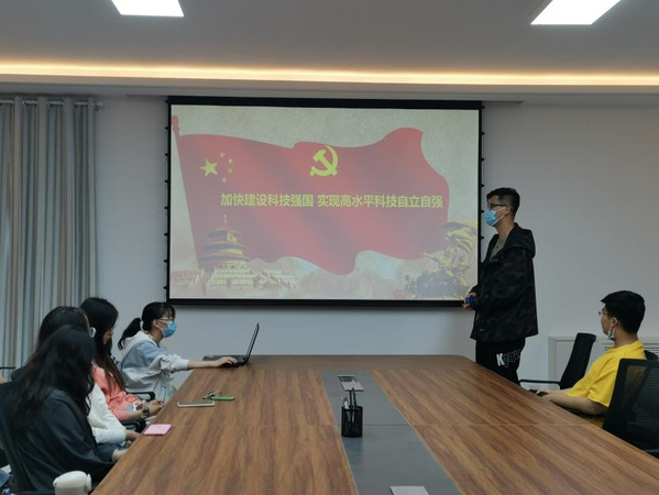 第二小组讲解人张一凡同志以“加快建设科技强国,实现高水平科技自立自强”为主题带领大家学习习近平总书记于各地考察时的重要讲话。张一凡同志谈到:“当前,百年变局与世纪疫情相互叠加,国际政治经济格局深刻变化,维护国家战略利益、推动高质量发展对科技创新的紧迫需求前所未有,这一大形势也对青年提出了更高的要求。我们作为当代青年大学生,必须努力学习专业本领,提高创新能力,为建设科技强国做出自己的贡献。”