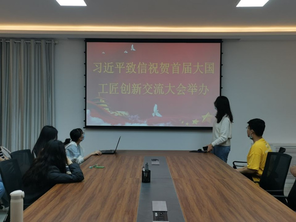 第四小组讲解人鹿译佼同志带领大家学习习近平总书记致信祝贺首届大国工匠创新交流大会举办。我们党的百年奋斗史,镌刻着劳模精神、劳动精神、工匠精神形成发展的光辉历程。鹿译佼同志在讲解中提到:“心心在一艺,其艺必工;心心在一职,其职必举。”她号召大家无论从事什么劳动,都要以勤学长知识、以苦练精技术、以创新求突破,努力成为知识型、技能型、创新型劳动者。
