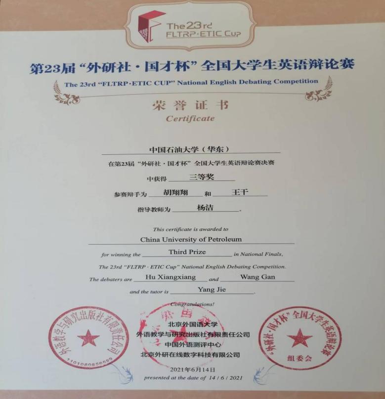 7.胡翔翔,王干,“外研社•国才杯”,全国大学生英语辩论赛,国家级三等奖
