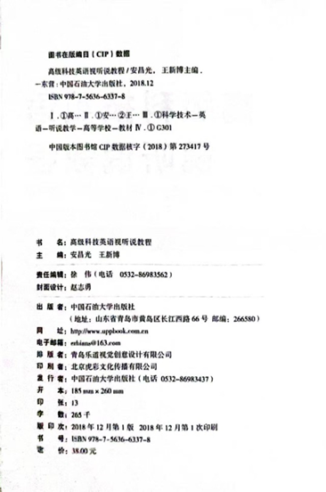 3.安昌光、王新博,2018.12,高级科技英语视听说教程,开云电竞投注出版社
