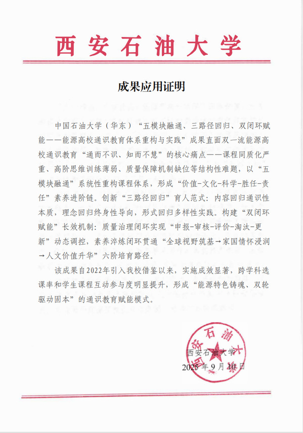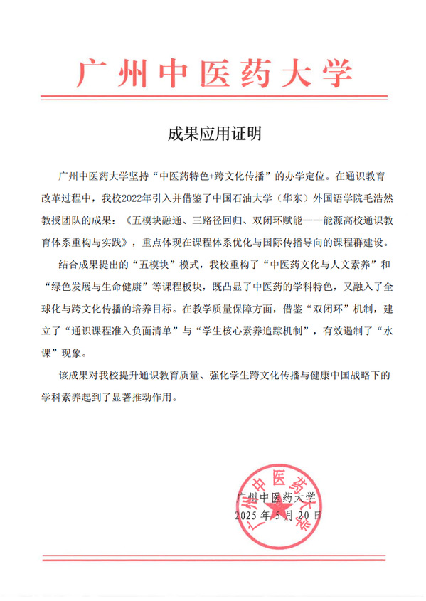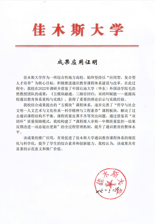 一、教学成果应用证明