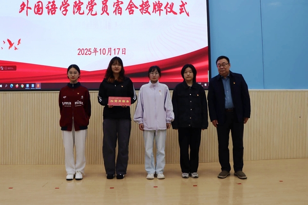为充分发挥学生党员的先锋模范作用,10月17日下午,外国语学院在南教300号举行“亮身份、树形象、作表率”党员宿舍授牌仪式。外国语学院党委副书记卢志同,转聘辅导员王增举、邹维忠,各年级专兼职辅导员和全体学生党员参加,仪式由研究生辅导员梅琳主持。