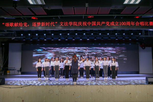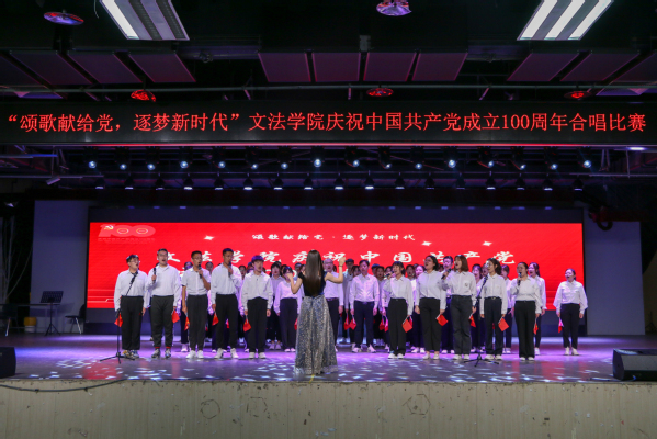 建党百年,盛世新章。为深入学习贯彻党史教育理念,厚植爱国主义情怀,5月29日下午,文法学院于唐岛湾三楼多功能厅举行“颂歌献给党,逐梦新时代”主题合唱比赛。此次合唱比赛由文法学院党委主办,学生党组织、团委、工会承办。文法学院院长王学栋、党委书记姚成郡、副院长魏学宝、党委副书记陈熙等出席,法学系教师杨欣、中国语言文学系主任沈壮娟和音乐系教师李汉、孙颖等担任本次比赛评委,学院全体师生参与。