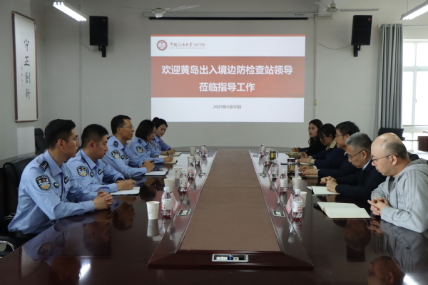 4月30日,黄岛出入境边防检查站副站长林学栋一行来我院交流,洽谈合作事宜。