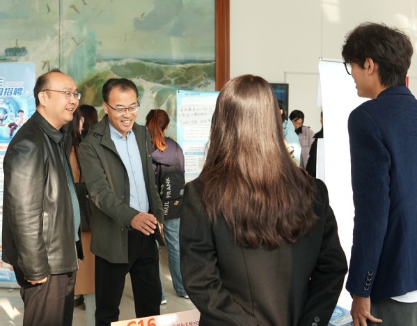 梁涛在招聘会现场与学院就业辅导员交流 杨倩摄