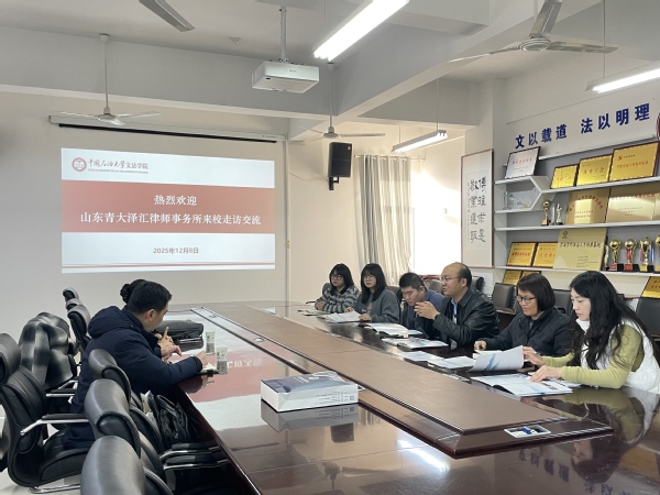 12月8日,山东青大泽汇律师事务所来我院进行走访交流。文法学院党委副书记陈熙、法学系党支部书记兼副主任谌爱华及各年级辅导员参与活动,双方就学院发展历程、律所建设、学生实习实践基地建设及人才招聘培养等问题进行了交流。