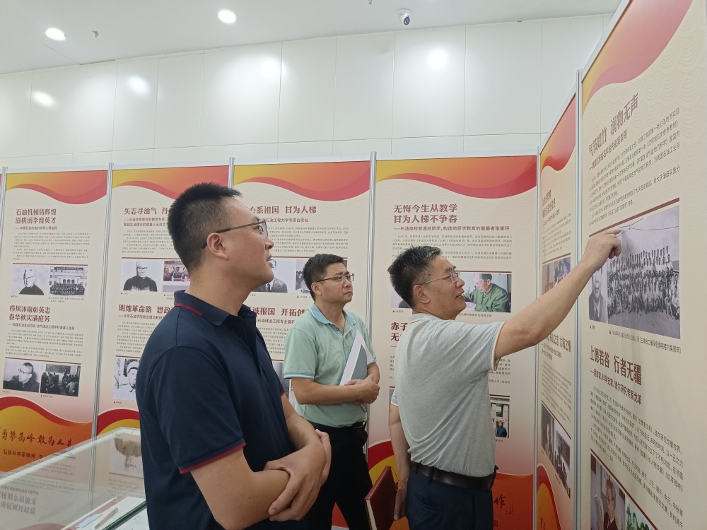 活动的第二阶段,支部成员前往校史馆参观 “致敬·风范——弘扬科学家精神、传承教育家精神”展览。参观过程中,同志们时而驻足凝视,时而分享交流,丰富的历史资料、珍贵的实物展品,让大家深切领略和感受到了老一辈石油高等教育工作者的奋斗历程、光辉事迹和崇高精神。