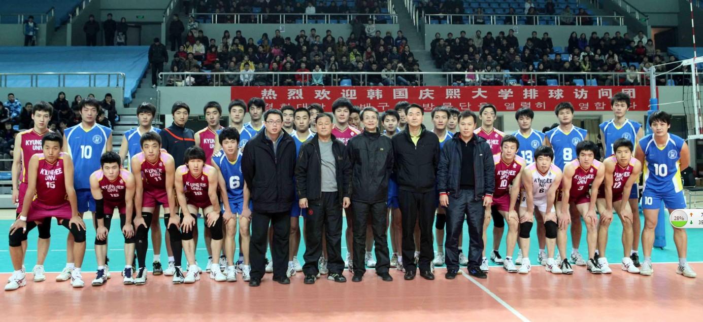 我校体育教学部与韩国庆熙大学体育部2008年10月建立了交流关系,2009年2月庆熙大学排球队对我校进行了成功访问和比赛活动,我校排球队于2010年5月回访了韩国庆熙大学。通过交流我校排球队在管理理念和训练方法,技、战术方面有了很大的改进和提高,特别在球队过硬作风的打造和拼搏精神的培养上我校排球队收获颇大,前不久我校排球队能在中国大学生排球锦标赛上夺得亚军与这方面的进步是分不开的。