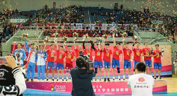 大学生排球联赛比赛分为南北赛区进行,2018-2019赛季北方赛区有27支男排球队,南方赛区有19支男排球队参加比赛。经过2018年10-11月的预赛,南北区前12名队伍晋级今年3月13至21日在内蒙古鄂尔多斯举行的24强赛,其中我校男排为北方赛区冠军,中山大学队为南方赛区冠军。24支队伍前两名直接晋级总决赛,进行三场两胜制的主客场比赛。我校男排以全胜的战绩排名小组第一晋级八强,随后在四分之一决赛和半决赛中均以3-0的比分分别战胜复旦大学和湖南师范大学,连续三年挺进总决赛,会师北方赛区老对手西北工业大学,在5月5日、10日两回合的比赛中,我校男排以3-1/3-0的比分战胜对手,成功卫冕中国大学生排球联赛总决赛冠军!