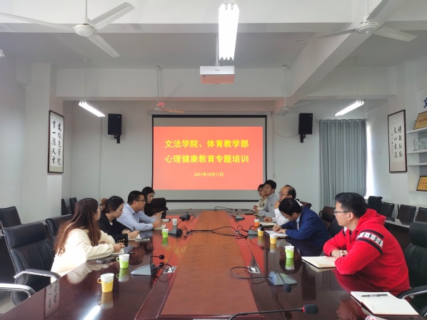 10月11日,体育教学部与文法学院在文理楼358会议室联合开展学工队伍心理健康教育专题培训。本次培训由我校心理健康教育中心执行主任韩旭东主讲,文法学院党委副书记陈熙、体育教学部党委副书记卢志同、两院部全体辅导员参加。