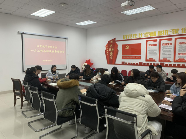 为及时总结和发现工作中的经验和不足,以更好地开展12月份的学生会工作,12月6日,体育教学部学生会在体育馆党员活动室开展十一月工作总结及业务培训会。本次会议由辅导员龙雯主持,部学生会全体成员参加。
