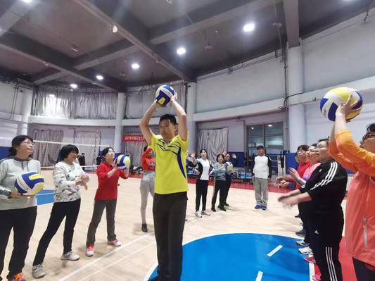 12月9号,在校体育馆篮球馆,教职工女子中年气排球队组织第一次训练,参加训练的队员23人,教练员王峰、林明贵、潘正鸿到现场指导训练。