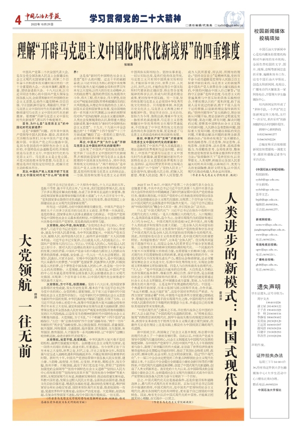 10月29日,《开云电竞投注报》第15期第4版整版刊发了我院教师阐释党的二十大精神的3篇理论文章。