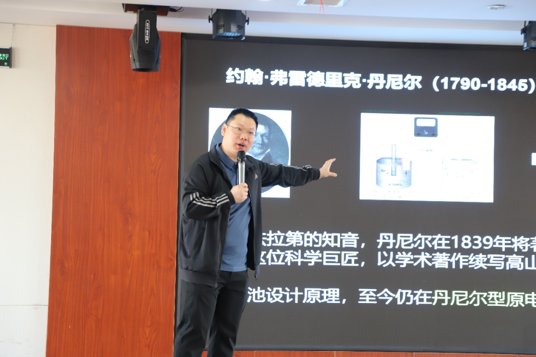 周炎副教授则聚焦电化学领域,从基础原理到新能源技术的前沿突破,系统阐述了电化学在推动绿色能源革命中的关键作用。他以幽默风趣的语言和贴近生活的案例,将复杂的科学知识转化为易于理解的内容,让同学们对新能源技术的未来充满信心。