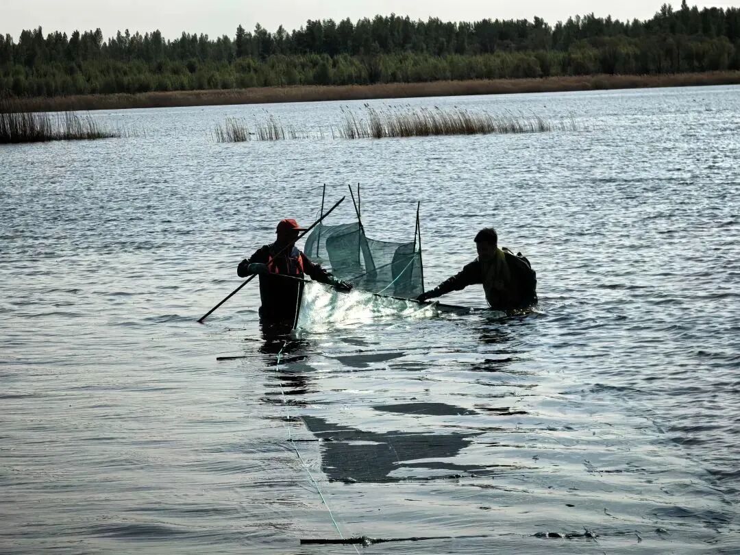 科左后旗巴彦毛都苏木拥有丰富的水面资源,但由于水质盐碱化,长期未能有效利用。我校联合黄海水产研究所对当地水域的水质成分、生态环境进行全面检测与分析,经过充分调研论证,初步筛选出海鲈鱼、南美白对虾和脊尾白虾等耐盐碱品种进行探索实验。首次实验克服育苗长途运输、上下游水位拦截和道路泥泞等难题,顺利投放了鱼苗,截至发稿,鱼苗活动正常,大部分自由游动到离岸水域。实验团队将定期监测水质变化、鱼类生长状况及环境适应性,为后续推广提供数据支撑。