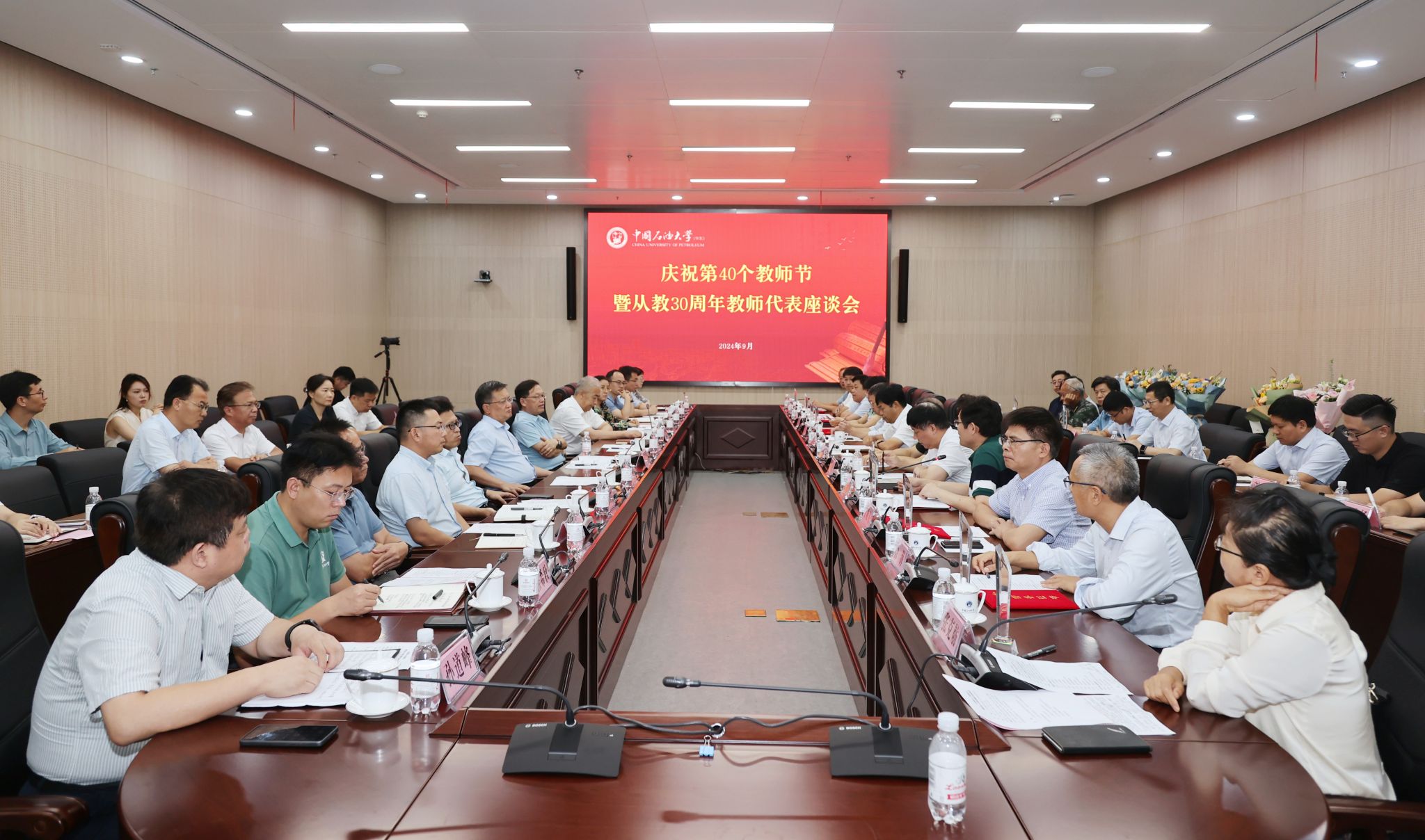 9月10日,学校召开庆祝第40个教师节暨从教30周年教师代表座谈会,学校党委书记王勇,党委副书记万云波,副校长周鹏,党委常委、宣传部部长赵放辉,从教30周年教师代表,2024年国家、省、市教书育人先进集体和优秀教师代表,新入职青年教师代表以及学校教师工作委员会成员单位负责人参加座谈会。王勇为从教30周年教师代表颁发奖杯和证书,周鹏为2024年国家、省、市教书育人先进集体和优秀教师代表赠送鲜花。王勇向全校广大教职员工致以节日祝福和衷心感谢,向2024年国家、省、市教书育人先进集体和优秀教师表示祝贺。他就弘扬教育家精神、推进学校高素质专业化教师队伍建设提出四点建议:一是提高政治站位,走在前开新局。二是坚持全环境养成,增强内生动力。三是树立典范榜样,持续精神引领。四是坚持协同发力,构建长效机制。