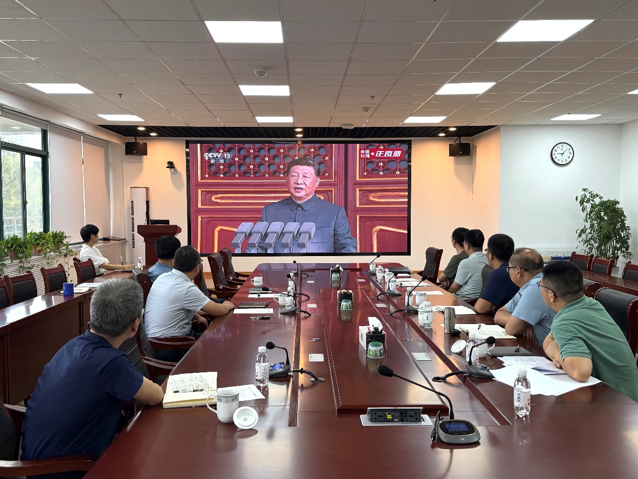 各报告厅、会议室和办公室内,气氛庄严肃穆。学院领导、各系师生,神情专注观看大会盛况。随着庄严的国歌声响起,全体师生起立同唱,表达对祖国的无限热爱与崇高敬意。直播过程中,大家认真聆听中共中央总书记、国家主席、中央军委主席习近平的重要讲话,深刻领会中国人民抗日战争在世界反法西斯战争中的东方主战场重要地位及其伟大历史意义,共同追忆中华儿女同仇敌忾、共赴国难的峥嵘历程,感悟铭记历史、缅怀先烈、珍爱和平、开创未来的重要意义。